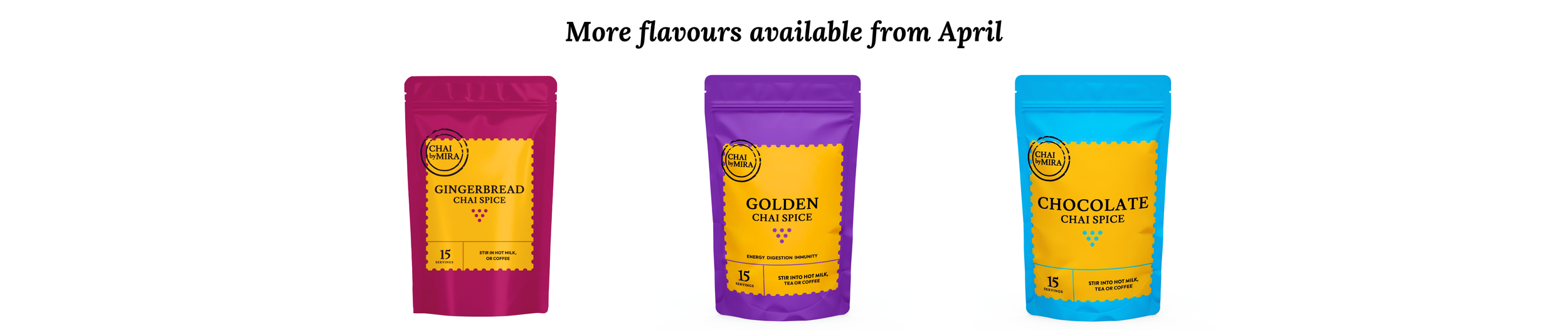 Chai Latte - Boil 1 cup milk (230ml) in a pan and stir in 1 tablespoon (2.5 teaspoons) of Chai by Mira. Whisk to make it frothy. You can also add 1 tablespoon to your daily cup of tea.